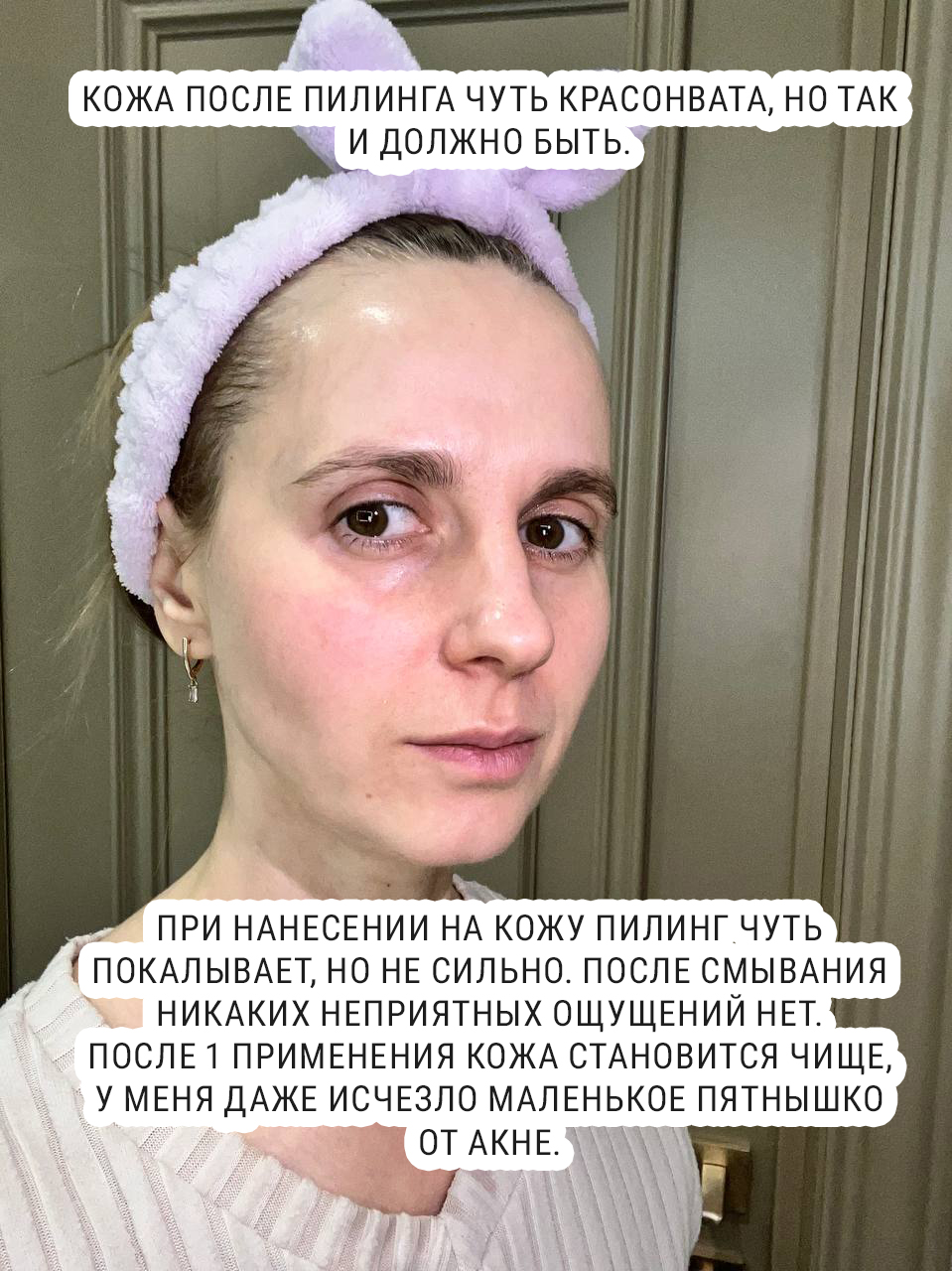 Если коротко, средство рабочее — кожа после него действительно становится более гладкой и свежей. И очень необычный формат со спикулами.