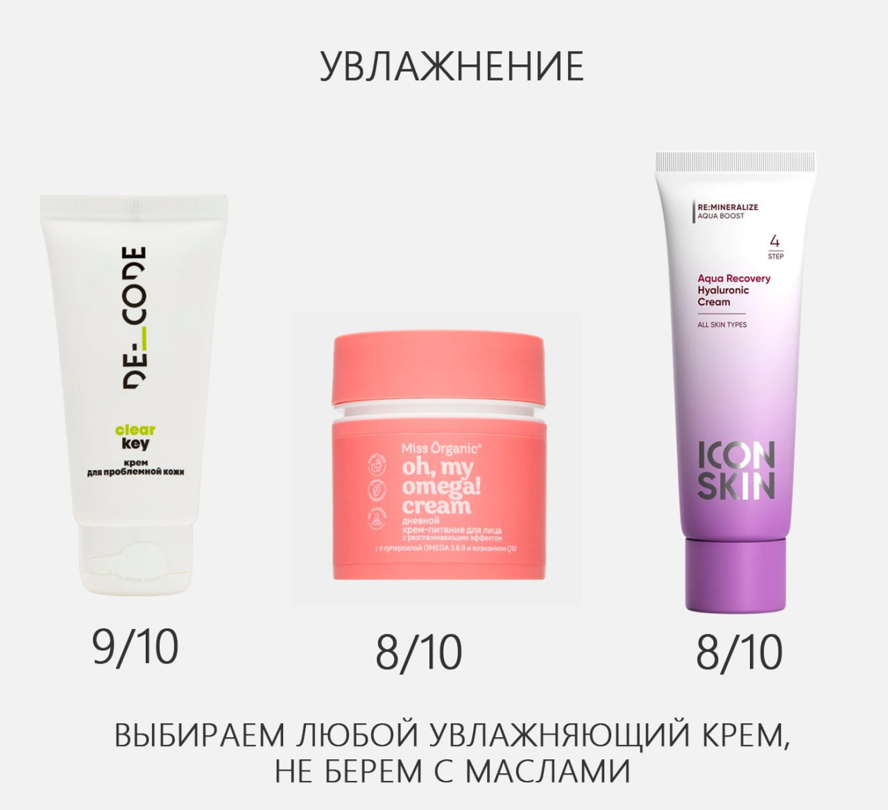 Это самый важный этап после кислот, потому что обезвоженная кожа производит ещё больше себума.