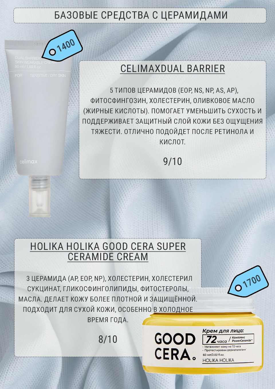 Перелопатила кучу сайтов, чтобы найти действительно рабочие продукты. Везде подпишу тип кожи и можете брать любой из этой подборки, как видите тут есть и бюджетные и дорогие средства ,но по составу они все отличные.
